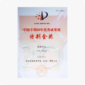 中國專利20年優(yōu)秀成果展特別金獎